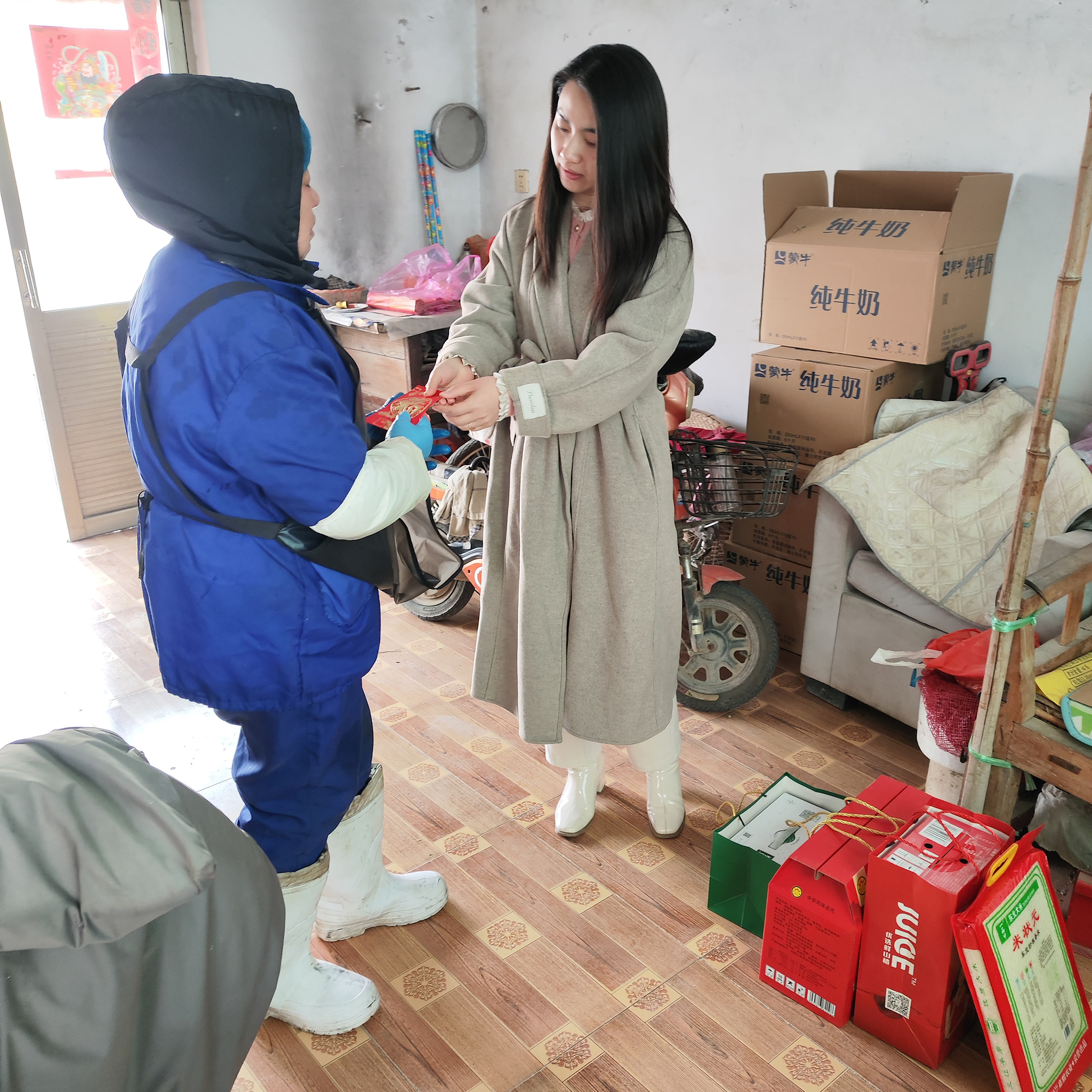 公司員工們帶著精心準備的牛奶、燒雞、米、面等生活物資來到程莊。每到一戶,大家都與老人們親切交流,仔細詢問他們的日常生活和身體狀況,傾聽他們的需求,為他們送上新春的祝福。老人們收到慰問品后,臉上綻放出幸福的笑容,對公司的善舉表達了誠摯的感謝。這些慰問物資不僅能解決他們生活中的實際困難,更讓他們在寒冬中感受到了濃濃的暖意。